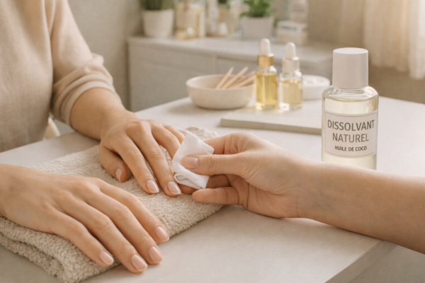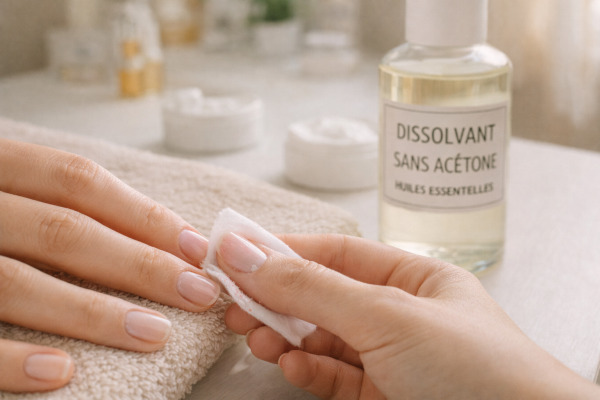 Il existe également des options entièrement naturelles, comme les dissolvants à base d'huiles essentielles ou d'huiles végétales. Non seulement ils sont doux pour les ongles, mais ils apportent également des bienfaits nutritifs grâce à leurs composants naturels.