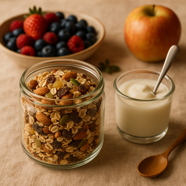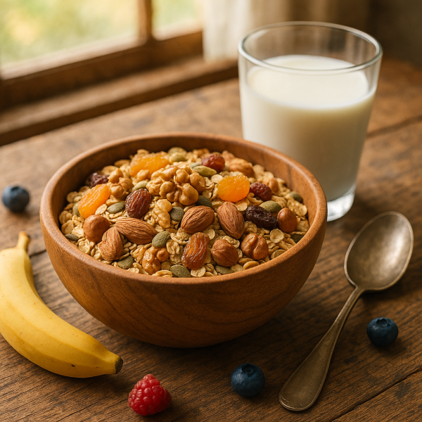 Pour ceux qui ont un emploi du temps chargé, le muesli est parfait. Il peut être préparé la veille et se consomme rapidement le matin. Il suffit d’ajouter un peu de lait ou de yaourt, et vous êtes prêt à partir !